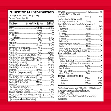 Brand: GNC Flavour: Unflavoured Primary Supplement Type: Multivitamin,Niacin Net Quantity 60.00 count Item Form: Tablet Item Weight: 0.15 Kilograms Diet Type :Non Vegetarian Product Benefits: Immune Support Age Range (Description): Adult Package Information: PACKET *43-IN-1 PREMIUM FORMULA: GNC Mega Men Sport Multivitamin (60 Tablets) is uniquely formulated for boosting fitness performance in active men. Each tablet is loaded with 43 highly nourishing ingredients with essential vitamins, minerals, and special blends to help you stay healthy and active . *SPECIAL SPORTS BLEND: Includes a special sports blend with L-Arginine, L-Glutamine, L-Taurine, Inositol, Choline, Boron, and Hyaluronic Acid for improving exercise potential by minimizing fatigue and muscle soreness. *POWERFUL BCAA BLEND: Unique BCAA blend with L-Leucine, L-Isoleucine, and L-Valine fuels muscle performance for building up good stamina. *SUPER ANTIOXIDANT BLEND FOR HEART, PROSTATE, AND EYE HEALTH: Each multivitamin tablet has a Super Antioxidant Blend to fight against free radicals and slow down ageing. Plus, it has Lycopene for supporting normal prostate function and a host of other micronutrients for protecting your heart and eyes. *FSSAI CERTIFIED: These multivitamin-for-men tablets are manufactured in an FSSAI-certified facility and follow compliance with the quality standards set.