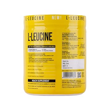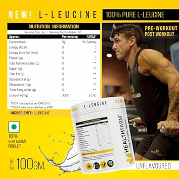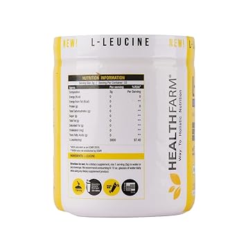 Brand: HEALTHFARM Flavour: Unflavoured Primary Supplement Type: L-Leucine Net Quantity: 1.00 count Item Form: Powder Item Weight: 0.1 Kilograms Item Dimensions: LxWxH 8 x 6 x 4 Centimeters Special Ingredients: Amino Acid Diet Type: Vegetarian Product Benefits: Energy Management About this item: *Muscle-building amino acid *Helps burn fat *Enhance exercise performance *No Sugar, soy, dairy, yeast, gluten and additives *100 Percent pure L-Leucine, no other ingredients