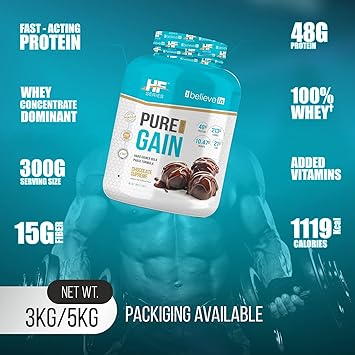 Brand HF Series Flavour Chocolate Supreme-3kg Item Weight 3 Kilograms Diet Type Vegetarian Product Benefits DAILY WORKOUT SUPPLEMENTS – Mix 1 serving with 16 oz of water or skim milk and consume twice daily, either in the morning, between meals or post-workout. For best results, use a blenderDAILY WORKOUT SUPPLEMENTS – Mix 1 serving with 16 oz of water or skim milk and consume twice daily,… See more Protein Source Whey Net Quantity 3000.0 gram Number of Items 1 Age Range (Description) Adult Item Dimensions LxWxH 21 x 21 x 31 Centimeters About this item: *1127 CALORIES PER SERVING – help add the quality mass to your frame that you’ve been looking for post-workout or even between meals *PERFECT RATIO OF CARBS & PROTEIN – provide your body a quality mix of carbs and protein the support your mass gaining goals *10G NATURALLY OCCURRING BCAAs PER SERVING – supports your recovery efforts from intense bouts of exercise *DAILY WORKOUT SUPPLEMENTS – Mix 1 serving with 16 oz of water or skim milk and consume twice daily, either in the morning, between meals or post-workout. For best results, use a blender